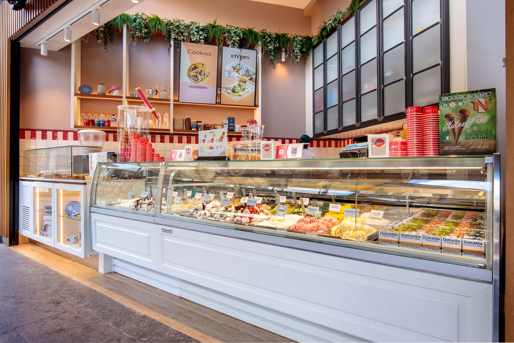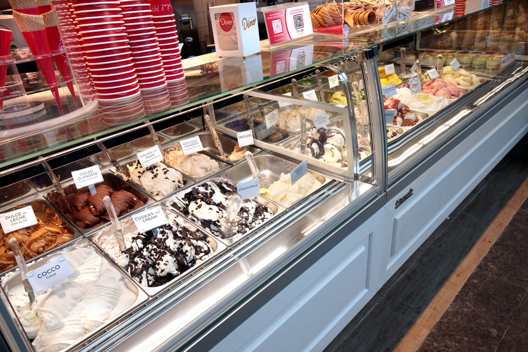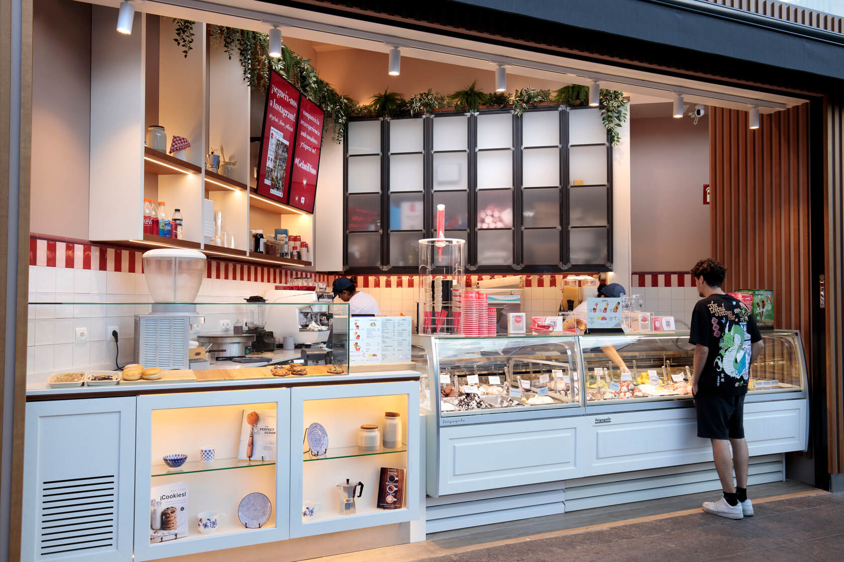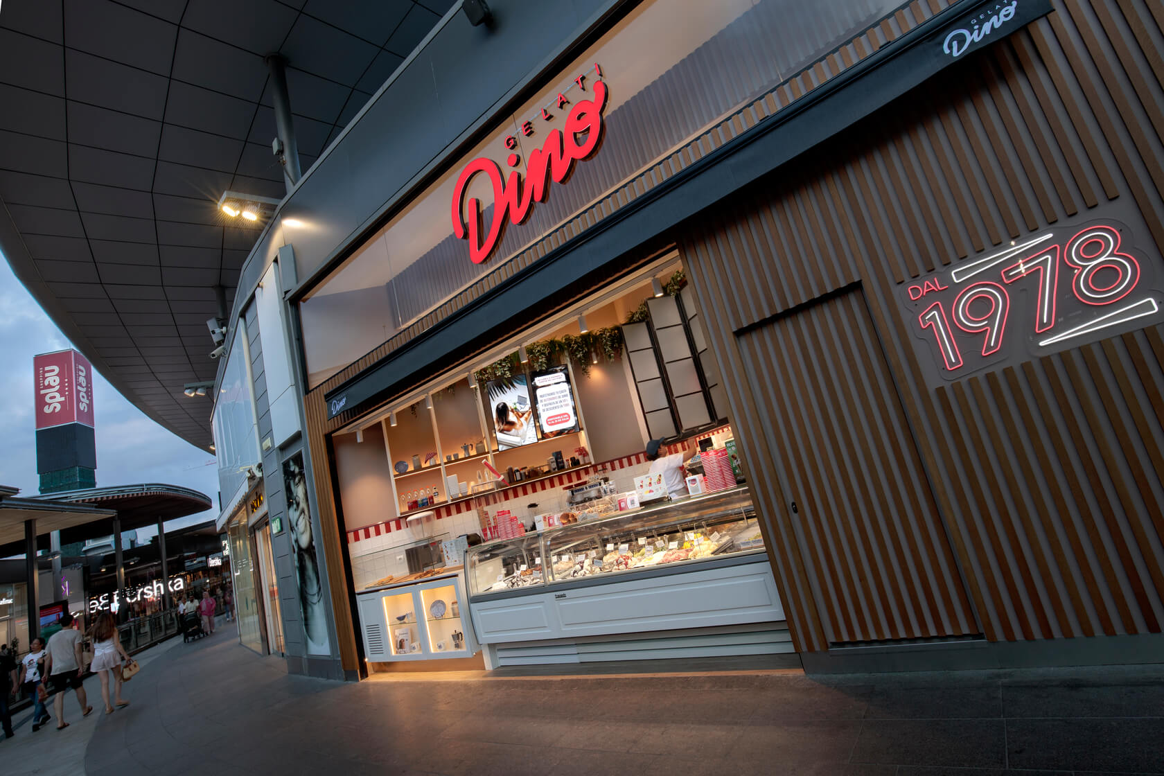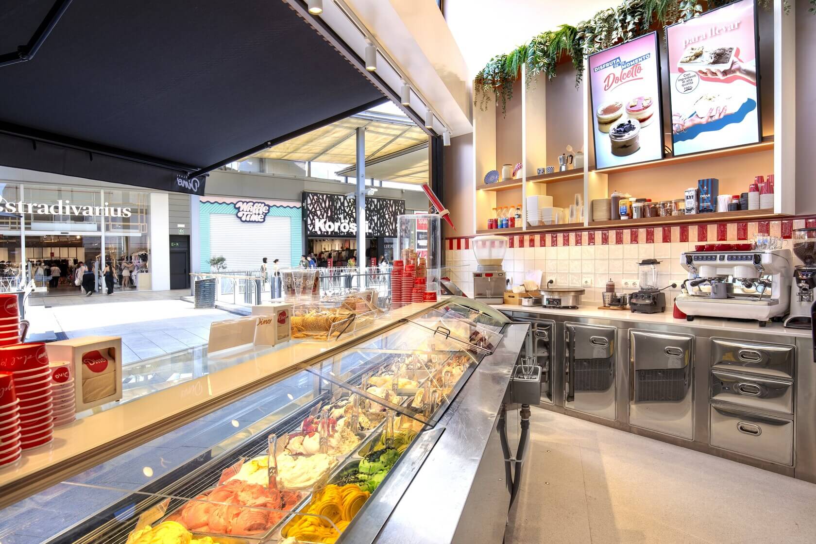 Nova gelateria DINO en el centre comercial Splau, Barcelona | Muntatge integral d’una franquícia amb una imatge de marca ja definida.